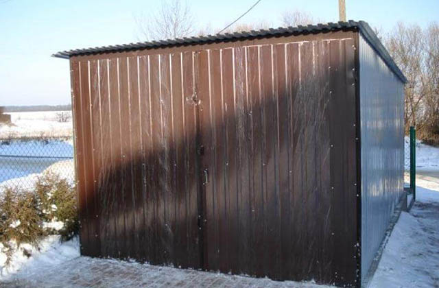 Garaż 3,0m x 5,0m o konstrukcji wykonanej z kątowników zimnogietych zabezpieczonych farbą podkładową „minią” koloru czerwonego. Konstrukcja poszyta jest blachą trapezową ocynkowaną (kolorystyka dowolna według potrzeb klienta) pierwszego gatunku, przytwierdzoną za pomocą nitów aluminiowych do szkieletu garażu tylko front garażu pokryty jest farbą akrylowa koloru brązowego. Garaż posiada następujące parametry wysokościowe: Wysokość z przodu 2,13m, wysokość światła wjazdu 2,0m, oraz wysokość tyłu 1,90m.Wyprodukowane elementy boczne, tył , przód wraz z bramą wjazdową łączone są za pomocą śrub. Jako ostatnim elementem montażowym by garaż stanowił całość instalowany jest dach ze spadkiem do tyłu osadzony na poprzeczkach z ceownika połączonych do ścian bocznych. Garaż posiada bramę wjazdowa dwuskrzydłową o wymiarach 3m szerokości i 2 metry wysokość posiadająca zamek w prawym skrzydle, dwa otwory pod kłódkę oraz rygle w lewym skrzydle. Garaż wykonany jest z odpowiednio dobranych materiałów które zapewniają odpowiednia jakość, trwałość oraz funkcjonalność na najwyższym poziomie. Ze względu na indywidualne potrzeby wykonujemy garaże według projektu klienta o dowolny wymiarach z bardzo bogatą bazą elementów dodatków.
