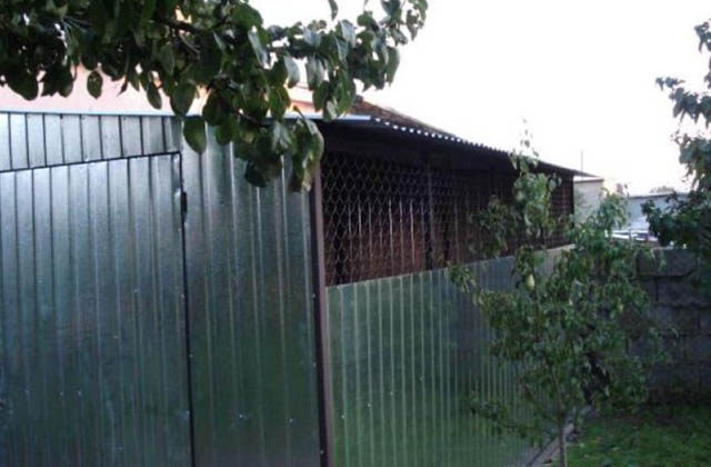 Garaż 3,0m x 5,0m o konstrukcji wykonanej z kątowników zimnogietych zabezpieczonych farbą podkładową „minią” koloru czerwonego. Konstrukcja poszyta jest blachą trapezową ocynkowaną (kolorystyka dowolna według potrzeb klienta) pierwszego gatunku, przytwierdzoną za pomocą nitów aluminiowych do szkieletu garażu oraz częściowo siatką stalową zespawaną z kątownikiem. Garaż posiada spad dachu na prawą strone gdzie wysokość wyższej ściany wynosi 2,45m, wysokość światła wjazdu 2,0m, oraz wysokość niższej ściany 2,13m. Wyprodukowane elementy boczne, tył , przód wraz z drzwiami łączone są za pomocą śrub. Jako ostatnim elementem montażowym by garaż stanowił całość instalowany jest dach ze spadkiem na bok osadzony na poprzeczkach z ceownika połączonych do ścian bocznych. Garaż posiada drzwi o wymiarach 1,0m szerokości i 2 metry wysokości które posiadająca zamek w skrzydle. Garaż wykonany jest z odpowiednio dobranych materiałów które zapewniają odpowiednia jakość, trwałość oraz funkcjonalność na najwyższym poziomie. Ze względu na indywidualne potrzeby wykonujemy garaże według projektu klienta o dowolny wymiarach z bardzo bogatą bazą elementów dodatków. Inwestycja została wykonana w województwie pomorskim.