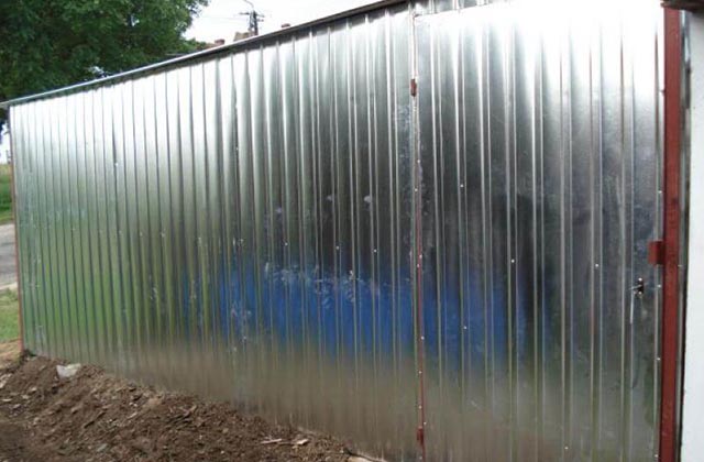 Garaż 3,0m x 5,0m o konstrukcji wykonanej z kątowników zimnogietych zabezpieczonych farbą podkładową „minią” koloru czerwonego. Konstrukcja poszyta jest blachą trapezową ocynkowaną (kolorystyka dowolna według potrzeb klienta) pierwszego gatunku, przytwierdzoną za pomocą nitów aluminiowych do szkieletu garażu Garaż posiada następujące parametry wysokościowe: Wysokość z przodu 2,13m, wysokość światła wjazdu 2,0m, oraz wysokość tyłu 1,90m. Wyprodukowane elementy boczne, tył , przód wraz z bramą wjazdową łączone są za pomocą śrub. Jako ostatnim elementem montażowym by garaż stanowił całość instalowany jest dach ze spadkiem do tyłu osadzony na poprzeczkach z ceownika połączonych do ścian bocznych. Garaż posiada bramę wjazdowa dwuskrzydłową o wymiarach 3m szerokości i 2 metry wysokość posiadająca zamek w prawym skrzydle, dwa otwory pod kłódkę oraz rygle w lewym skrzydle oraz dodatkowe drzwi na lewej ścianie o wymiarach 1,0szerokości i 2,0m wysokości. Garaż wykonany jest z odpowiednio dobranych materiałów które zapewniają odpowiednia jakość, trwałość oraz funkcjonalność na najwyższym poziomie. Ze względu na indywidualne potrzeby wykonujemy garaże według projektu klienta o dowolny wymiarach z bardzo bogatą bazą elementów dodatków. Inwestycja została zrealizowana w województwie kujawsko-pomorskim.