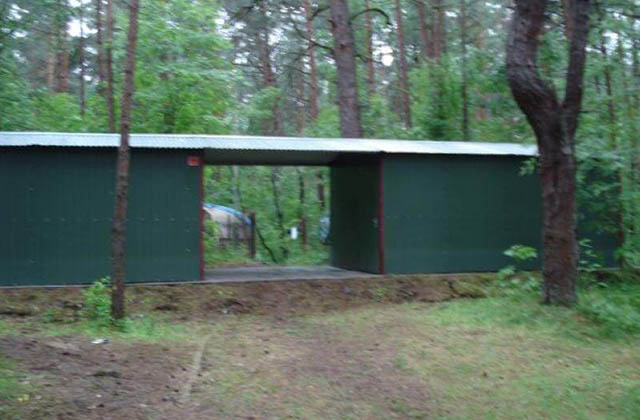 Garaż 3,0m x 5,0m o konstrukcji wykonanej z kątowników zimnogietych zabezpieczonych farbą podkładową „minią” koloru czerwonego. Konstrukcja poszyta jest blachą trapezową akrylową w kolorze zielonym (kolorystyka dowolna według potrzeb klienta) pierwszego gatunku, przytwierdzoną za pomocą nitów aluminiowych do szkieletu garażu. Garaż blaszany posiada dach dwuspadowy gdzie wysokość ścian bocznych wynosi 2,13m, wysokość światła wjazdu 2,0m, oraz wysokość szczytu 2,45m. Wyprodukowane elementy boczne, tył , przód wraz z bramą wjazdową łączone są za pomocą śrub. Jako ostatnim elementem montażowym by garaż stanowił całość instalowany jest dach dwuspadowy osadzony na kratownicy oraz poprzeczkach z ceownika połączonych do ścian bocznych. Garaż posiada drzwi wejściowe o wymiarach 1,0m szerokości i 2 metry wysokości, zaopatrzone w zamek. Jak widać na zdjęciu dwa garaże połączone zostały ze sobą dachami tworząc między nimi zadaszenie o szerokości 3,0m Garaż wykonany jest z odpowiednio dobranych materiałów które zapewniają odpowiednia jakość, trwałość oraz funkcjonalność na najwyższym poziomie. Ze względu na indywidualne potrzeby wykonujemy garaże według projektu klienta o dowolny wymiarach z bardzo bogatą bazą elementów dodatków.