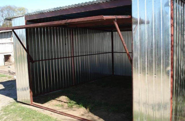 Garaż 4,0m x 6,0m o konstrukcji wykonanej z kątowników zimnogietych zabezpieczonych farbą podkładową „minią” koloru czerwonego. Konstrukcja poszyta jest blachą trapezową ocynkowaną (kolorystyka dowolna według potrzeb klienta) pierwszego gatunku, przytwierdzoną za pomocą nitów aluminiowych do szkieletu garażu Garaż posiada następujące parametry wysokościowe: Wysokość z przodu 3.35m, wysokość światła wjazdu 2,5m, oraz wysokość tyłu 2,82m. Wyprodukowane elementy boczne, tył , przód wraz z bramą wjazdową łączone są za pomocą śrub. Jako ostatnim elementem montażowym by garaż stanowił całość instalowany jest dach ze spadkiem do tyłu osadzony na poprzeczkach z ceownika połączonych do ścian bocznych. Blaszak posiada bramę podnoszoną do góry o wymiarach 3,0m szerokości (po otwarciu2,70) i 2,0 metry ( po otwarciu 1,94m) wysokości która posiada zamek z klamka. Brama zamontowana jest zamontowana centralnie na środku ściany 4,0m. Garaż wykonany jest z odpowiednio dobranych materiałów które zapewniają odpowiednia jakość, trwałość oraz funkcjonalność na najwyższym poziomie. Ze względu na indywidualne potrzeby wykonujemy garaże według projektu klienta o dowolny wymiarach z bardzo bogatą bazą elementów dodatków.